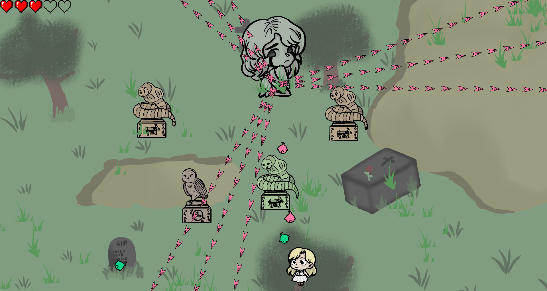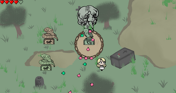 You find yourself needing to exorcise statues in a graveyard from a horde of tiny evil spirits?! Battle the statues to free them and I'm sure they'll be grateful!